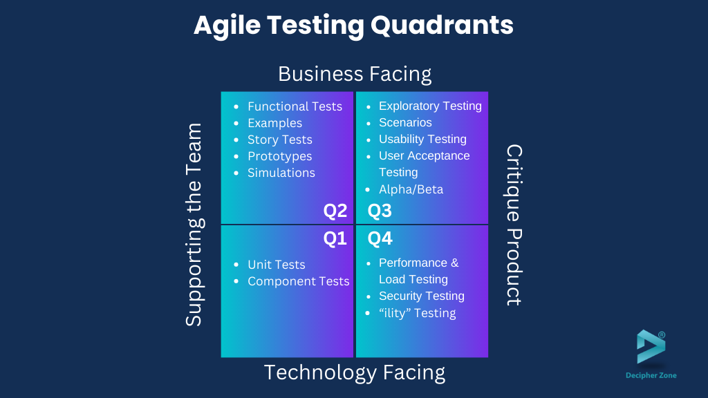✅ Test Quadrants = زاوية الرؤية لكل نوع من التست (بتساعدك تجاوب: ليه؟ لمين؟) ، إزاي نغطي التستينج بشكل متوازن من كل الزوايا (Dev + Business + UX + Performance)